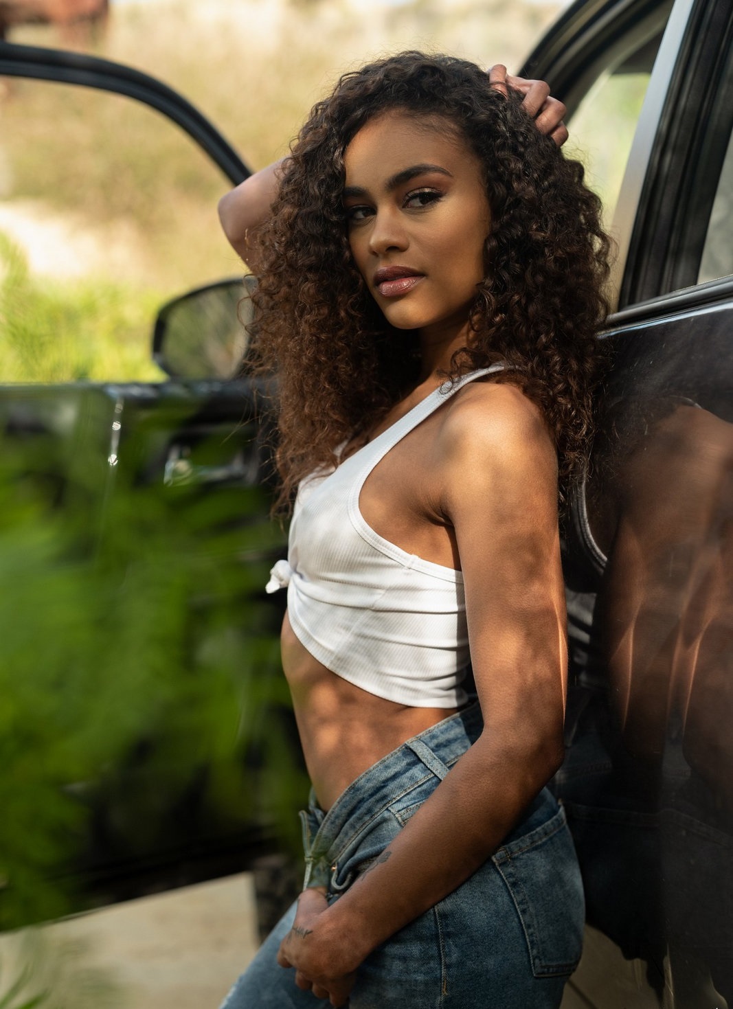 Scarlit Scandal from Playboy, posing outside. Scarlit Scandal is a stunning 26-year-old model from the United States, originally hailing from Fort Pierce. With her captivating brown eyes and brunette beauty, she naturally draws attention wherever she goes. Scarlit brings charm, confidence, and elegance to every shoot, making her a standout in the world of modeling.